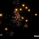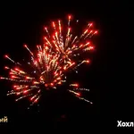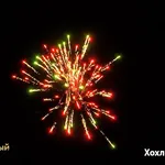 Эффекты: 1. Разноцветные кометы разрываются сферами. 2. Серебряные форсы с красными и зелеными огнями на концах. 3. Серебряные форсы с красными огнями на концах и синие огни. 4. Серебряные форсы с серебряными огнями на концах. 5. Трещащие огни.